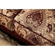 MATTEO Sofa, 94"L X 37"W X 44"H, 180lbs. This is American-made Victorian elegance defined. Ornate wood construction hosts a combination of burgundy chenille and antique paisley fabrics to boast a design befitting of royalty! It's the couch guaranteed to be a centerpiece of conversation.