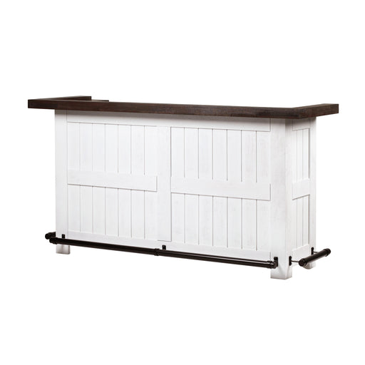 Introducing the Harrison Bar, a captivating centerpiece that seamlessly blends functionality and style. Finished in a white distressed tone, this b...