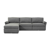 The Catarina Gray Sectional is where versatility meets timeless elegance. Upholstered in performance fabric and available in sophisticated gray or soothing beige, the Catarina sectional is the epitome of style and durability. With two bolster pillows flanking the arms, it delivers the perfect blend of comfort and support. What truly sets it apart is its adaptable design; the chaise can be placed on either side, making it a seamless fit for your unique space. Crafted with precision and showcasing enduring charm, the Catarina Sectional is an invitation to elevate your living area with a touch of sophistication and quality that will stand the test of time.