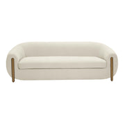 Elevate your home with this stunning Lina Cream Textured Linen Sofa from the Inspire Me! Home Decor x TOV Collection. Crafted with the finest materials, the Lina Sofa features sumptuous linen upholstery in a soft cream hue that exudes elegance and sophistication. Plush cushions provide exceptional comfort, making this sofa the perfect spot to relax after a long day, and the brass details add a luxe statement.