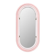 Introducing the Neon Mirror - the perfect combination of style and fun. Crafted from iron with gold accents, different shades of pink or blue add dimensions to the otherwise minimalistic frame. This mirror is available as a wall mirror in two sizes, and it will undoubtedly add a pop to your room!