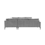 The Serena Collection makes modern design soft and cozy and is sure to become your favorite spot. This 6-piece sectional—left-arm loveseat, right-arm loveseat, 2x armless chairs, and 2x corner chairs—is upholstered in a luxurious gray distressed velvet for lots of texture, and is available in three colors. The clean lines are complemented by tall matte black metal legs. Enjoy our preset configurations or customize your own design - the Serena is the sectional you have been looking for.