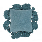 Stone Washed Denim Blue Cotton Tasseled Pillow