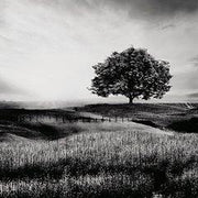 Filled with calming natural elements, this wall art has a refined look with a restful feel. It captures a landscape with rolling hills, drawing your eye to the tree standing tall in the center of the creation. Lighter tones in the clouds bring brightness to the black and white design, making for a striking addition to your modern decor.