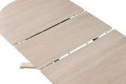 Table + 6 Chairs, Mid-Century Modern, White Oak, Rubberwood, Oak Veneer, Engineered Wood, Table Extendable w/ Leaf, Double Pedestal Base, Option of 3 Chair Colors, Spindle Back, Molded Seats
