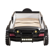 Turn your kids' nighttime routine upside down in a good way with this fun and novel bed! They will love this off-road SUV bed, with awesome features such as bright, remote-controlled lights that glow to the tune of the built-in speakers. The padded leatherette headboard offers safety and comfort, while large replicated tires help fuel their imagination of adventures each and every night.