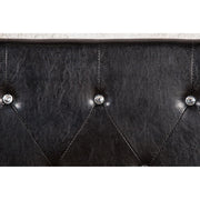 This black padded leatherette bed helps bring about the beauty of this set. Crystal-like acrylic buttons adorn the tufting in the headboard, while matching case goods mirror the simplicity of the bed with straight lines and simple silhouettes. Available in five sizes.