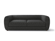 This compact living room ensemble is full of welcomed surprises. The tall arms and low back is an obvious homage to the tuxedo style, but the bulbous shape and smoother lines is a unique twist taking inspiration from the modern era. Underneath the seat cushions are high density foam, making firmer seats than one would expect for the shape that it is in. Finally, soft boucle fabric wraps around the whole piece highlighting a certain air of elegance and quiet class.