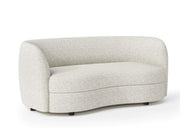 Compact fitted kidney-shaped single cushion, curved arms and backrest, and barely-there wooden legs contribute to this piece's tight fit and ultra comfort. Besides the intriguing shape, the other draw here is the visual impact it brings to any modern space. The boucle fabric features metallic undertones which when paired with a neutral color palette under certain lighting conditions, allow the texture to glitter and shine in the most undeniably chic way.